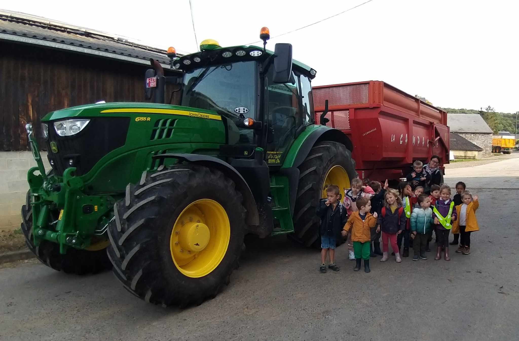 Les élèves de maternelle de l'école de Thon sont allés observer l'ensilage du maïs de la ferme Baudoin.
