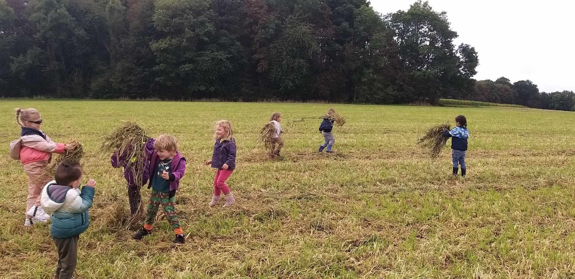 En effet, les enfants observent ce champ de manière hebdomadaire au travers des saisons dans le cadre de l'école du dehors et ont vu grandir le maïs. Ainsi ensilé, il servira à nourrir les vaches en hiver!