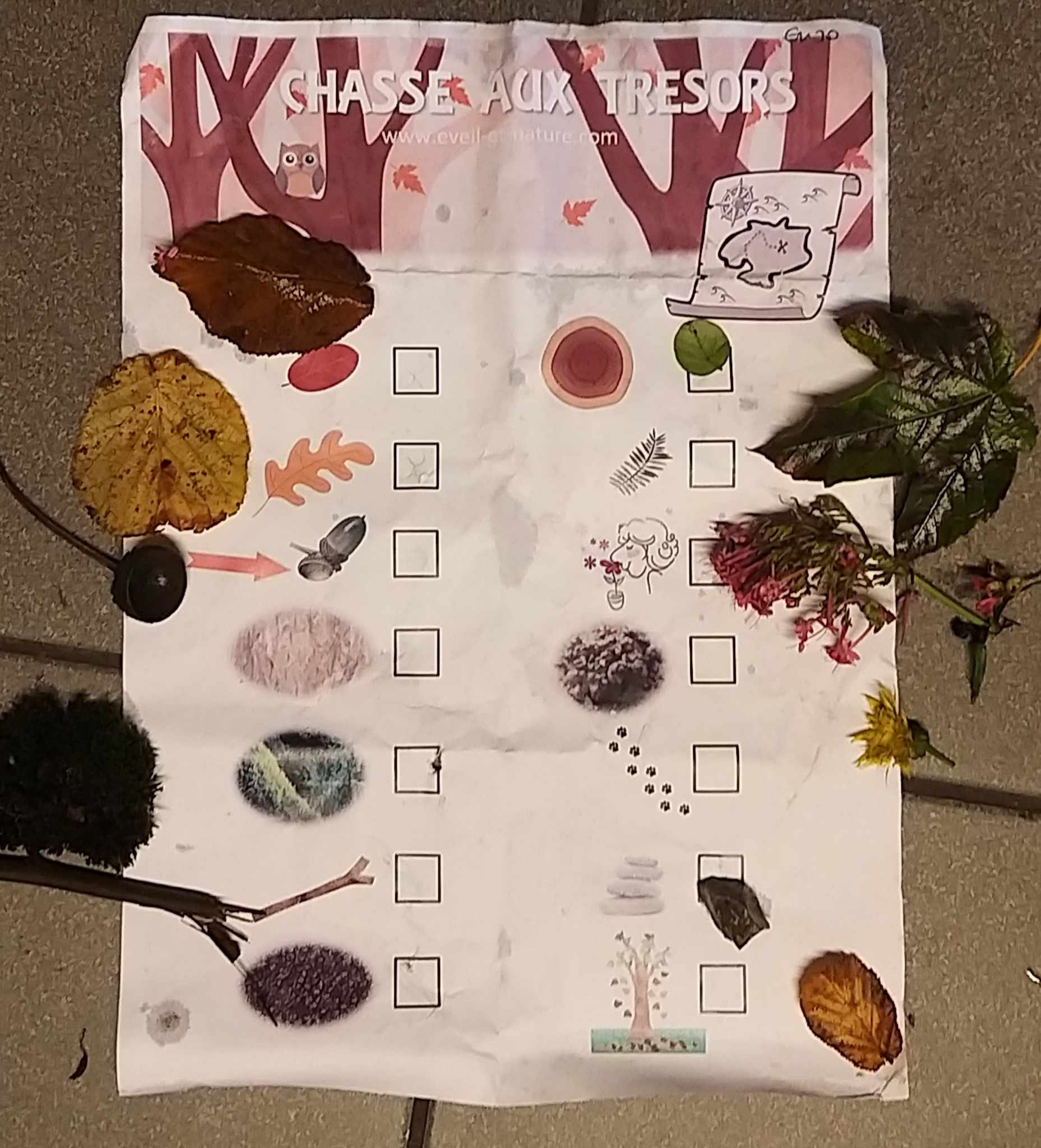 En même temps, une chasse aux trésors est organisée: trouver des traces du passage d'un animal, quelque chose de rugueux, une cupule de gland,... Une belle occasion de mieux observer ce qui nous entoure.
