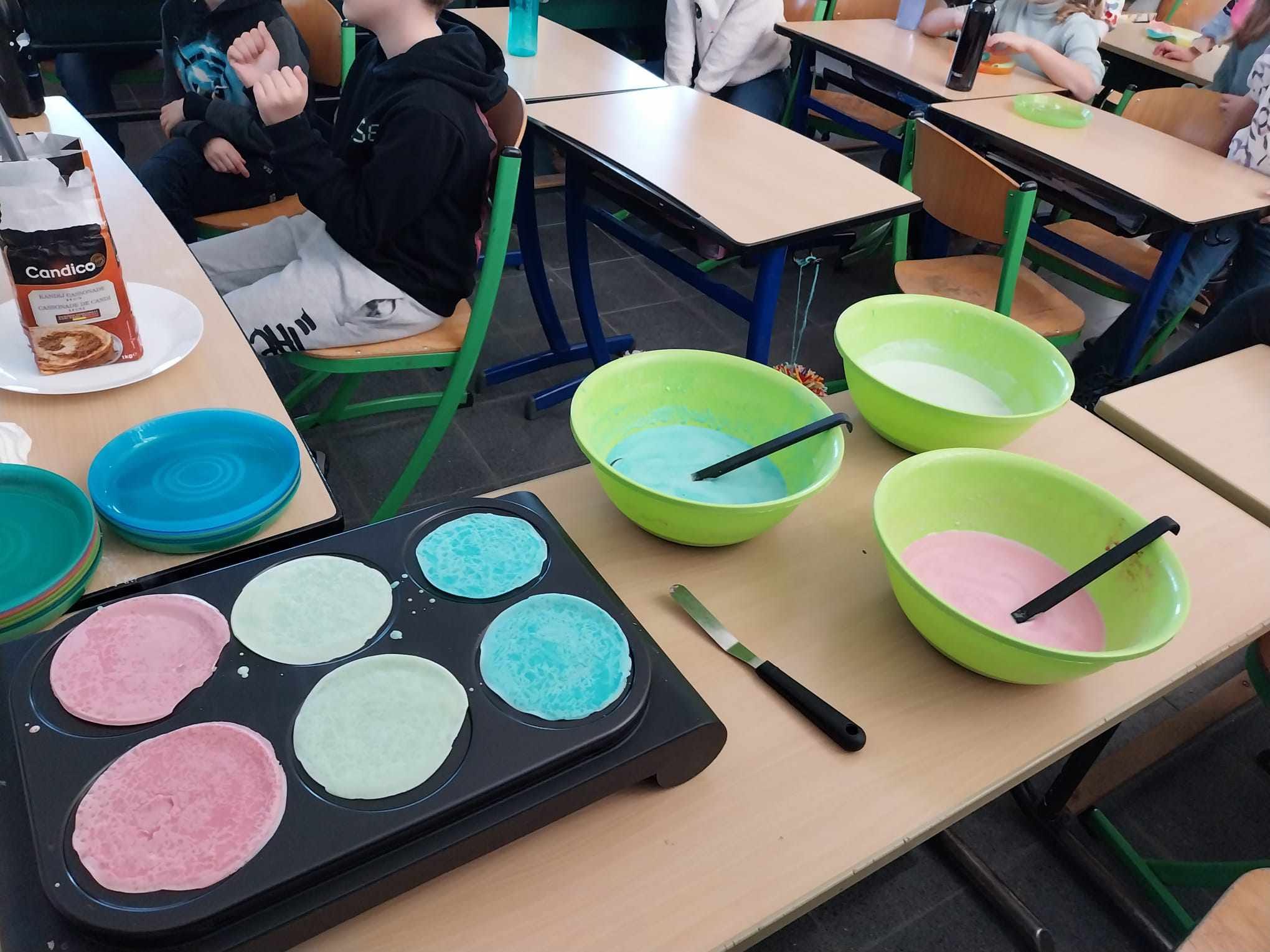 C'est une délicieuse odeur de crêpes qui flottait dans nos implantations. Les enfants ont préparé et dégusté de succulentes crêpes (que certains ont même tenté de colorer comme dans l'histoire découverte en classe).