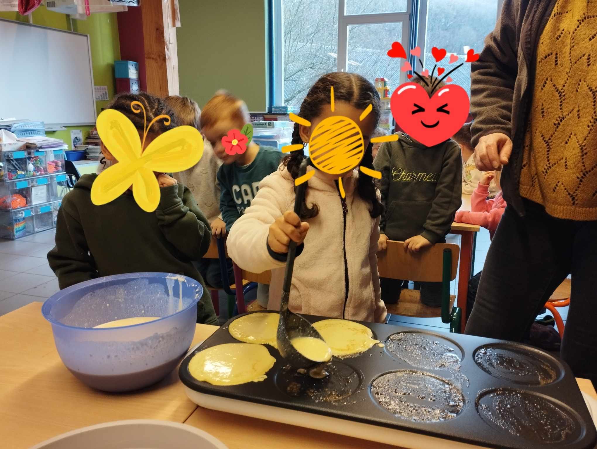 Vive la chandeleur à l'école du dehors de l'école de Thon!