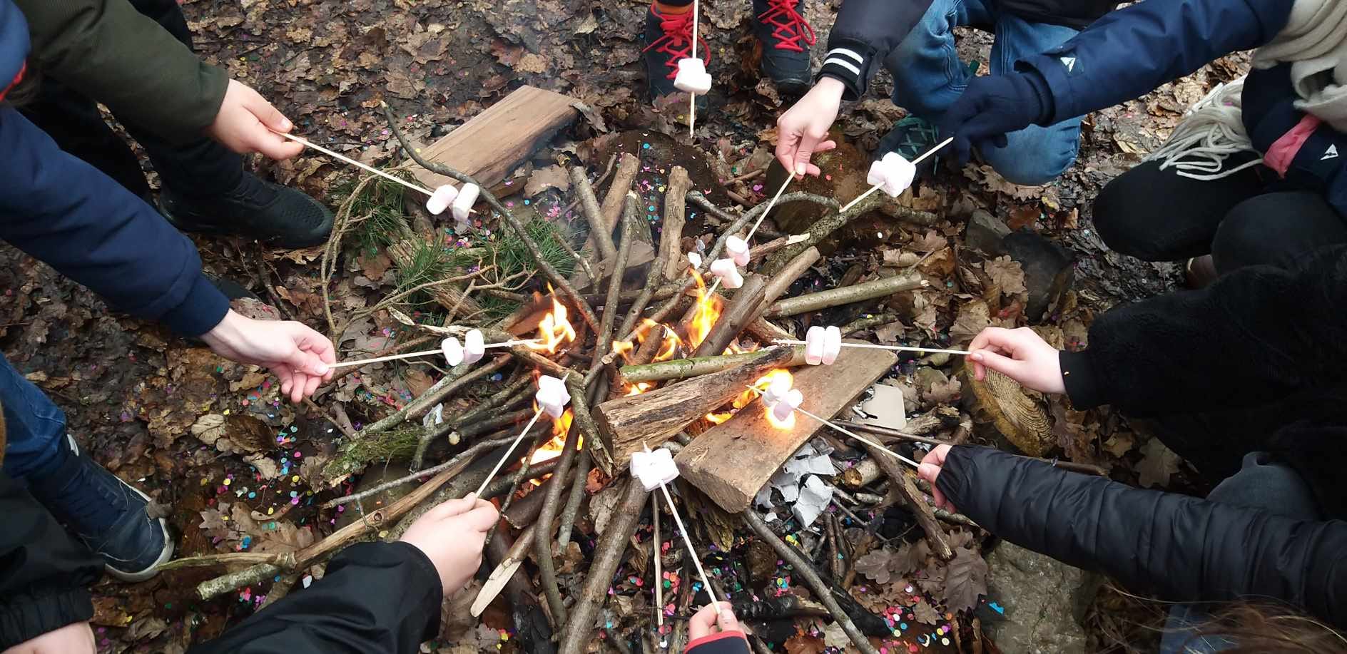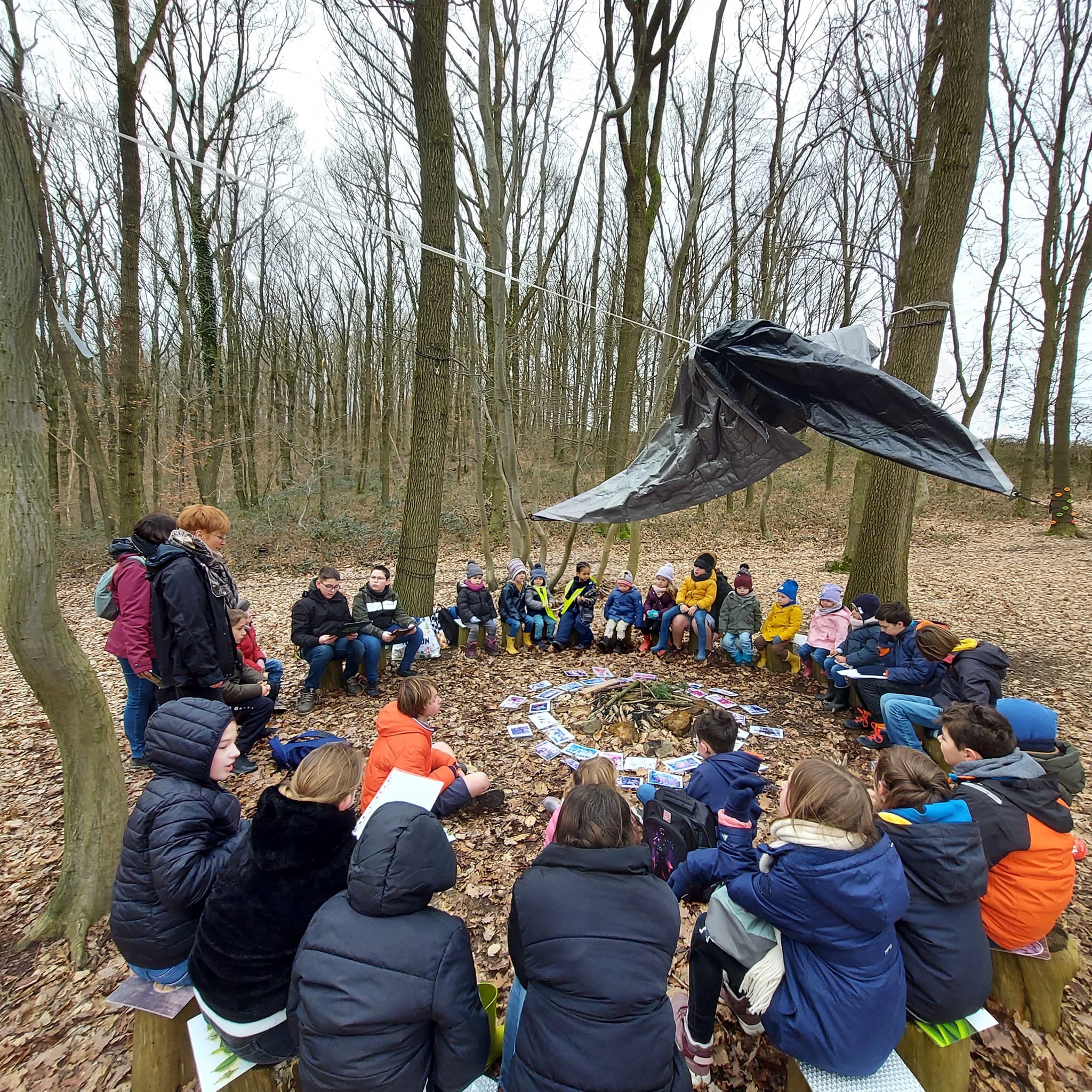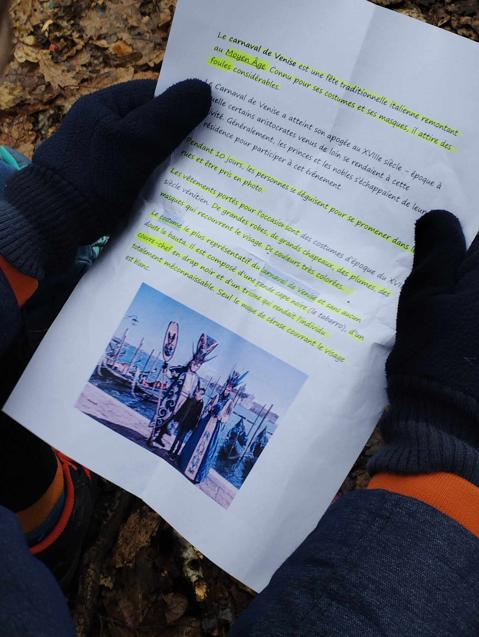 Ensuite, arrivés en forêt, les grands de 6è primaire avaient préparé une super animation au sujet des carnavals de Belgique et du monde!