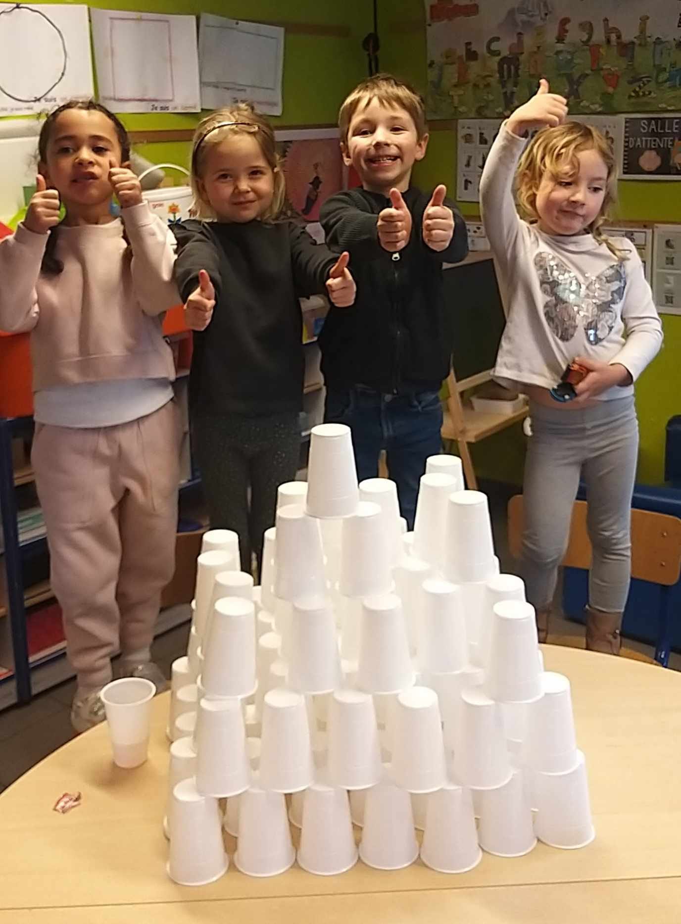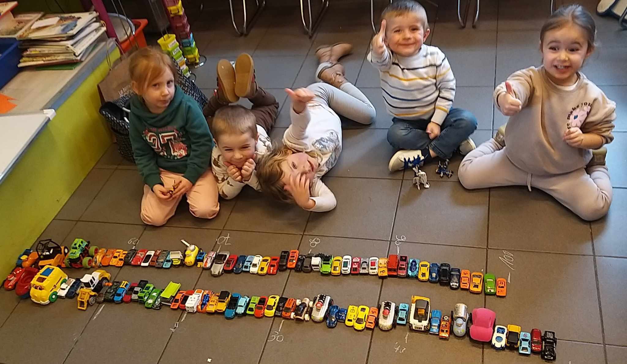 Nos collections de 100 objets (avec vérification du nombre d’objets composant chaque collection) et nos défis mathématiques ont permis aux enfants de mieux appréhender le système de numération...dans la joie et la bonne humeur!