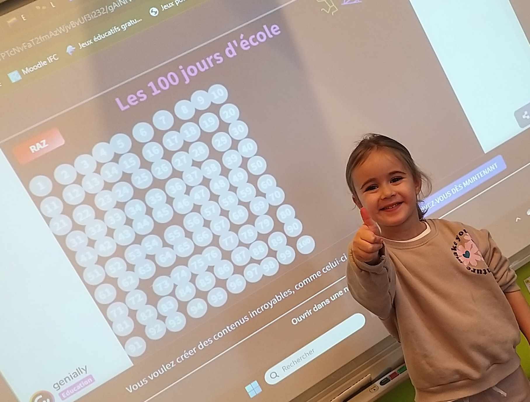 Les élèves de maternelle de l'école de Thon ont participé à la fête du 100ème jour d’école faisant suite aux rituels de numération mis en place tout au long de l’année.