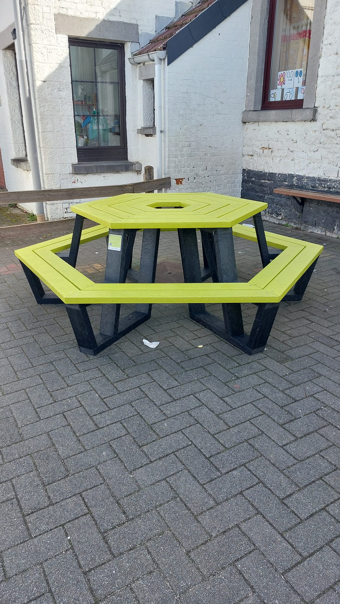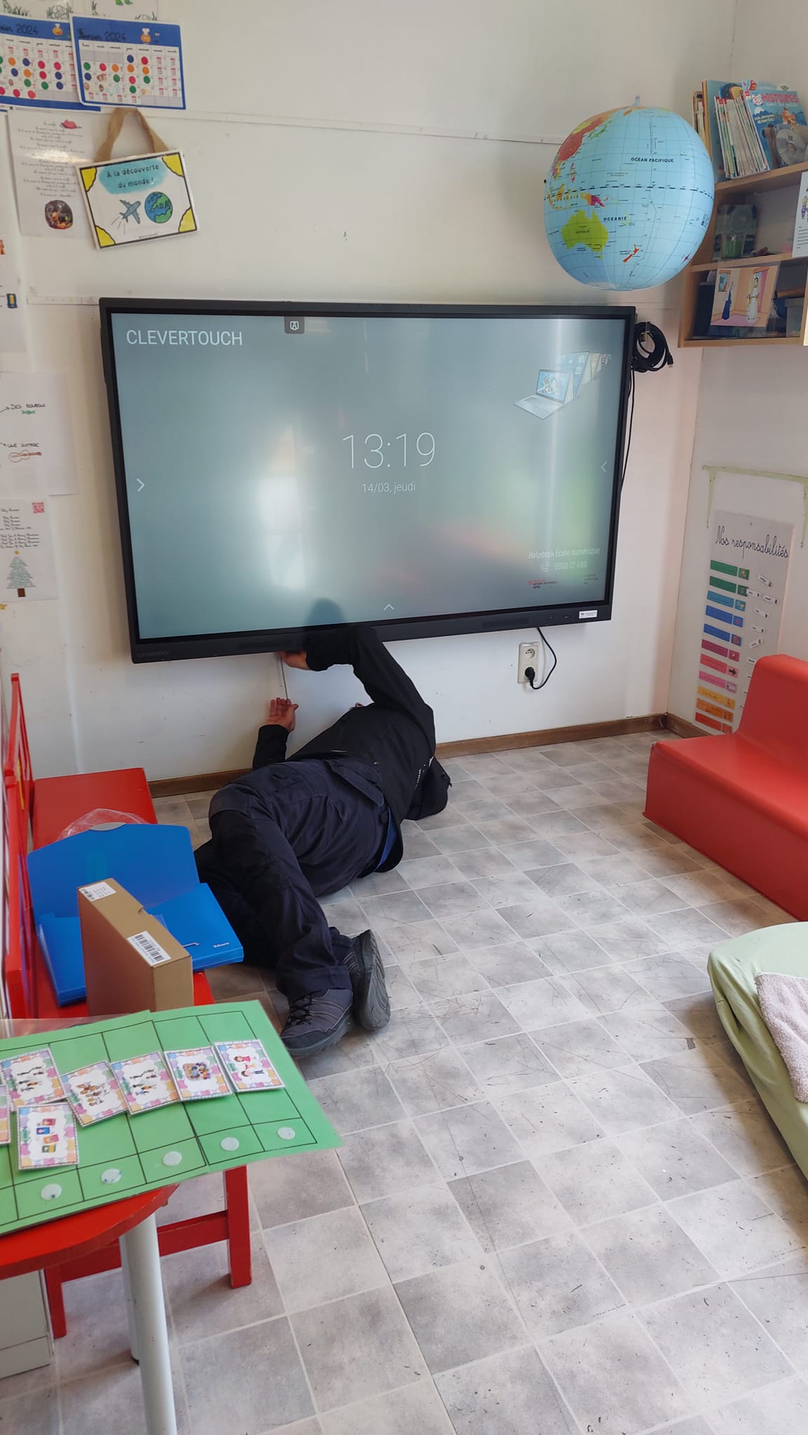 Grande journée livraisons aujourd'hui à Bonneville : les nouveaux tableaux interactifs sont installés et notre cadeau Bebat, une grande et costaude table de pique-nique à pris place dans la cour.