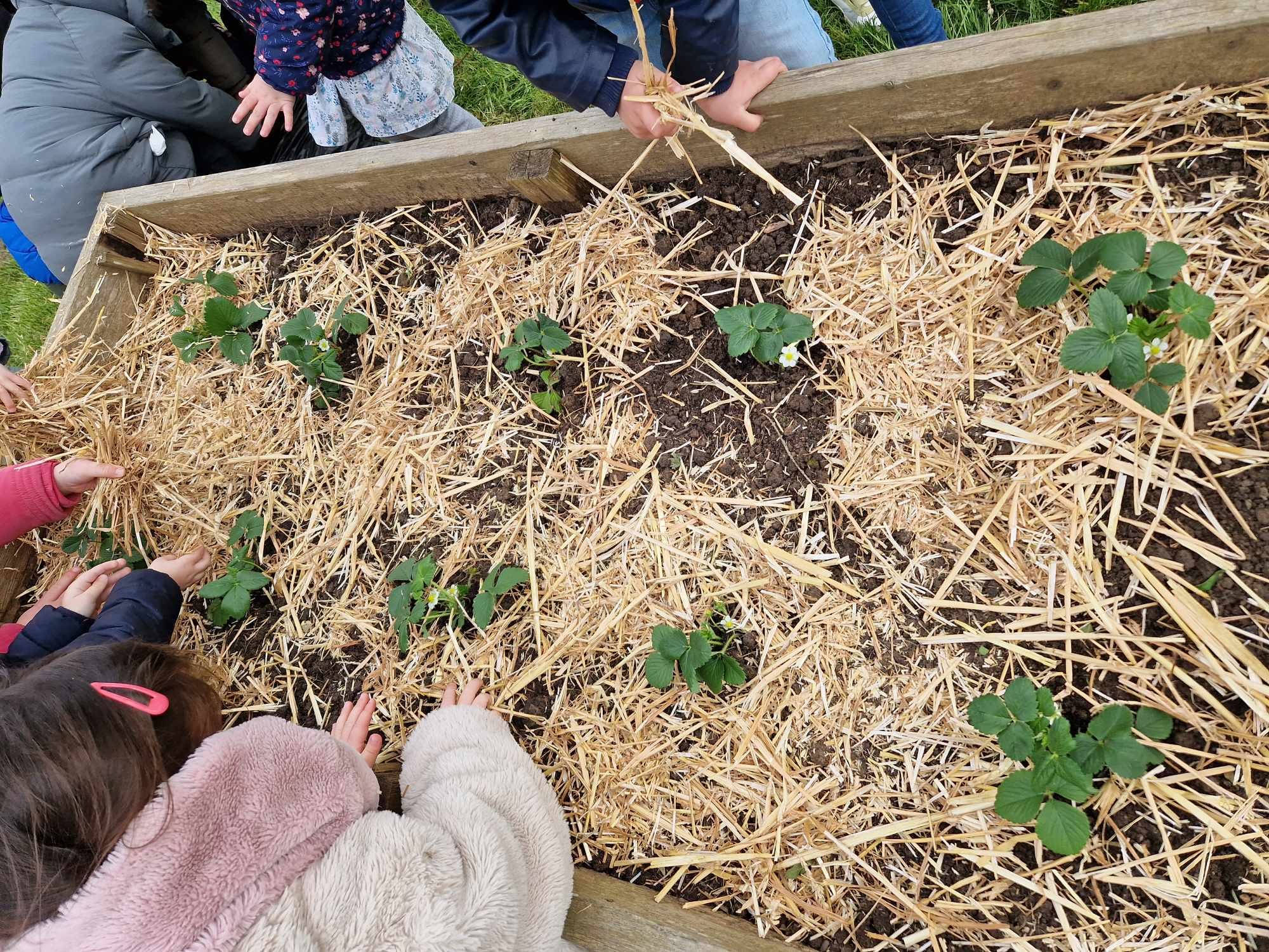 C'est le printemps. Cet après-midi les petits ont commencé à planter des fraisiers.