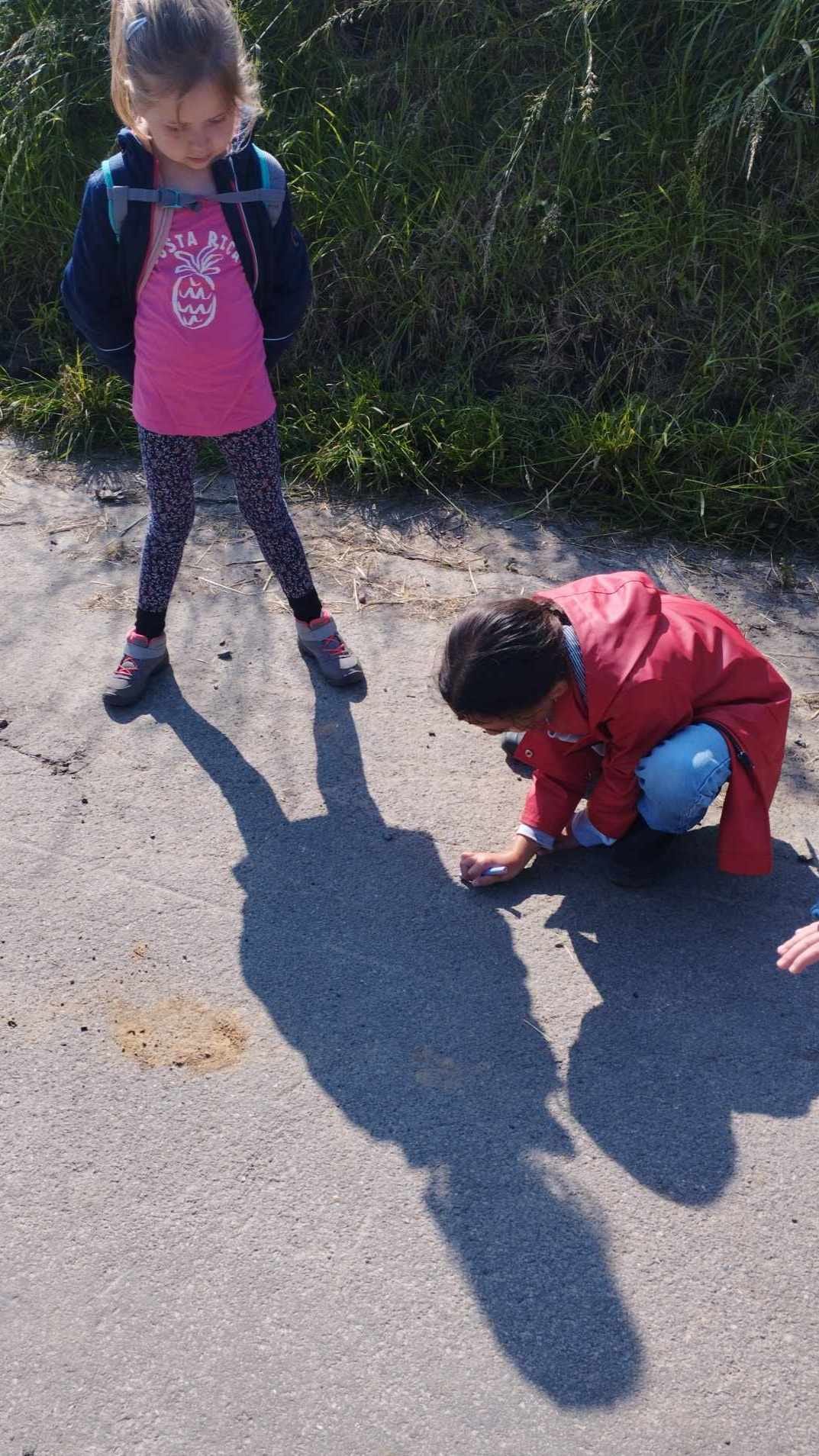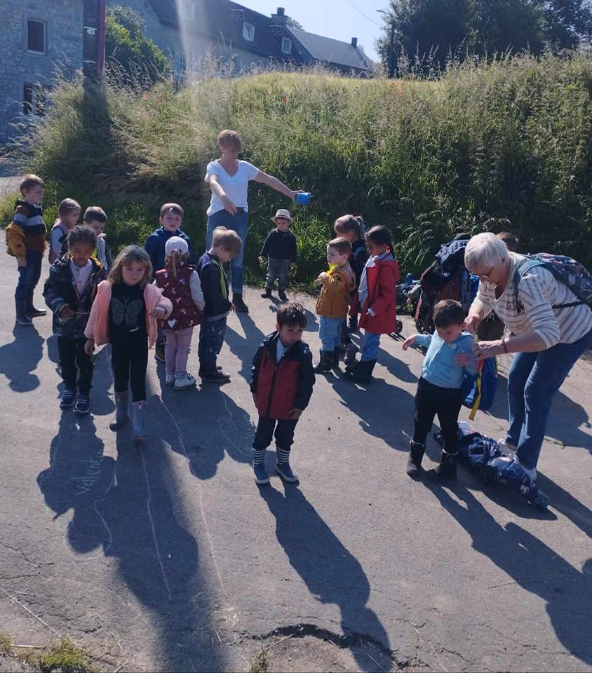 Expériences avec les ombres, rencontres avec les habitants, observation du chantier de construction de la maison d'un copain de classe, "notre" tilleul est prêt à fleurir, le maïs pousse au champ, la forêt accueille nos jeux.