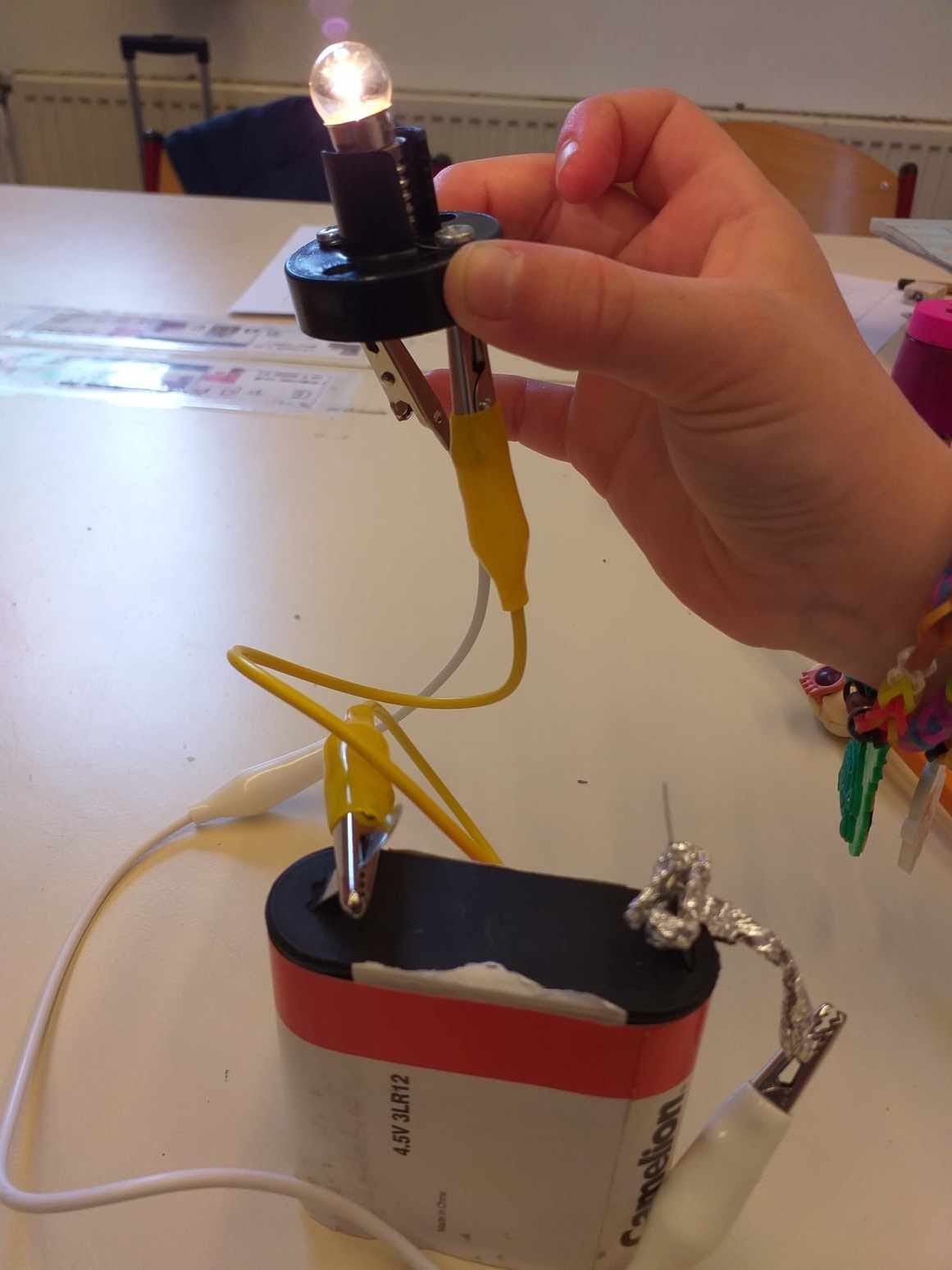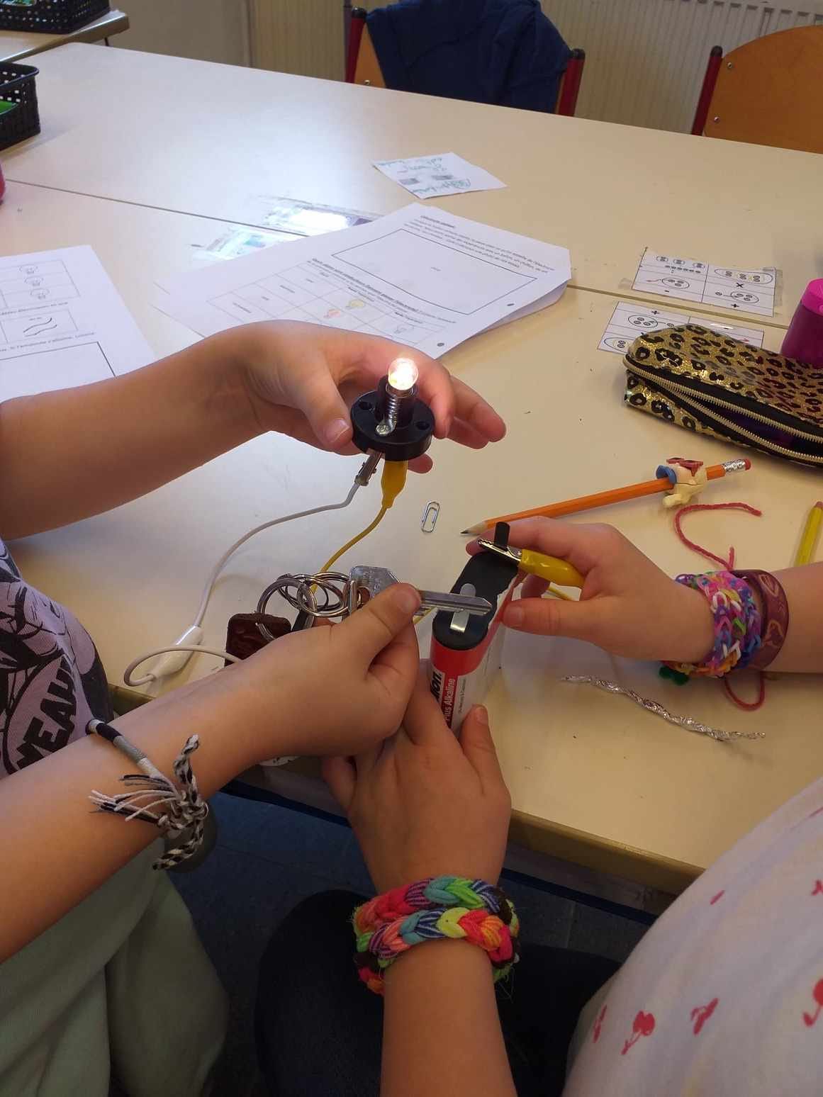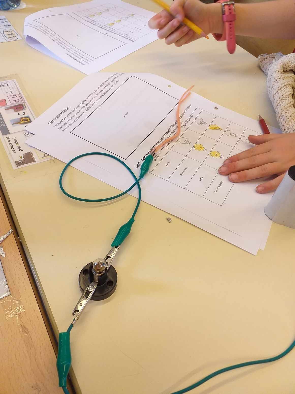 Puis ils ont réalisé un petit circuit électrique et testé les matériaux conducteurs ou non.