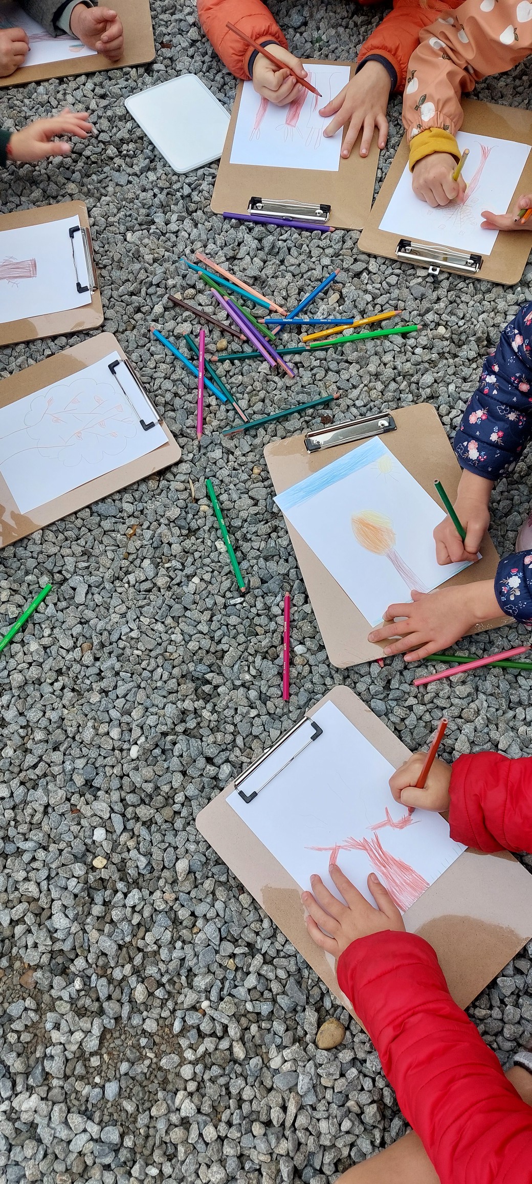 Et enfin, au retour près de l'église, nous avons dessiné le marronnier en automne. Nous le suivrons de près, puisqu'à chaque saison nous observerons son évolution !