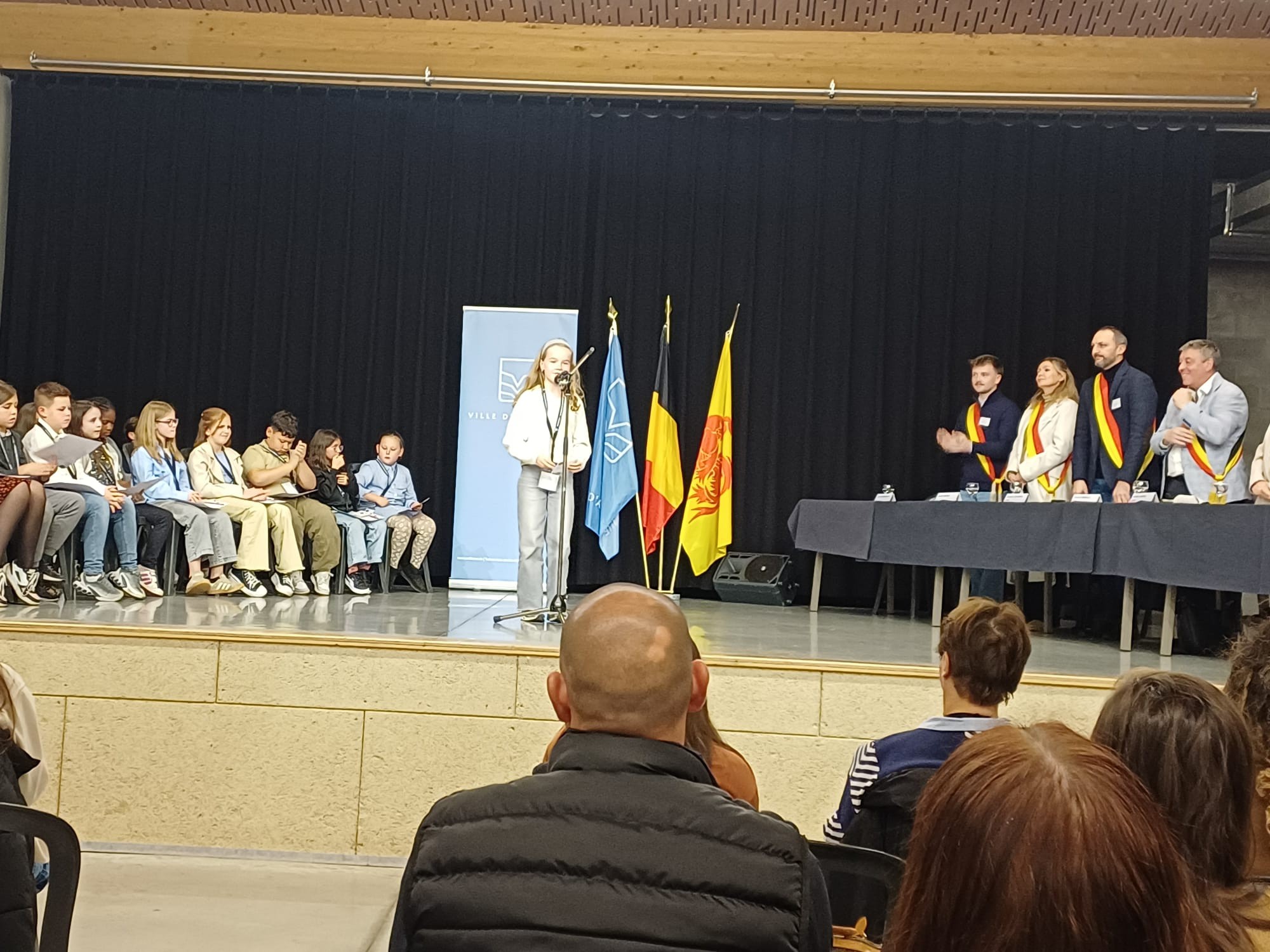 Hier, Madène et Lou ont prêté serment pour le conseil communal des enfants, en présence du Collège communal, dont le bourgmestre. Elles y représenteront donc notre école. Bon travail et bravo!!!