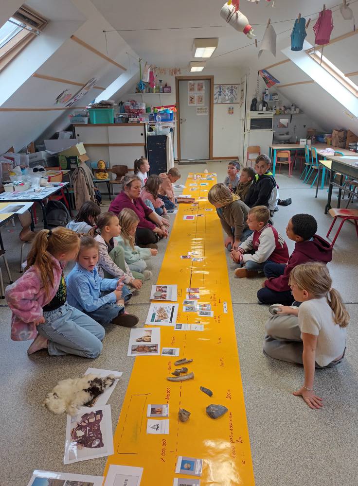 Les élèves de P3/P4 ont participé à un projet PECA sur la ligne du temps. Avec l'aide de Virginie et la visite du Phare, les périodes de l'Histoire n'ont plus de secret pour nous.