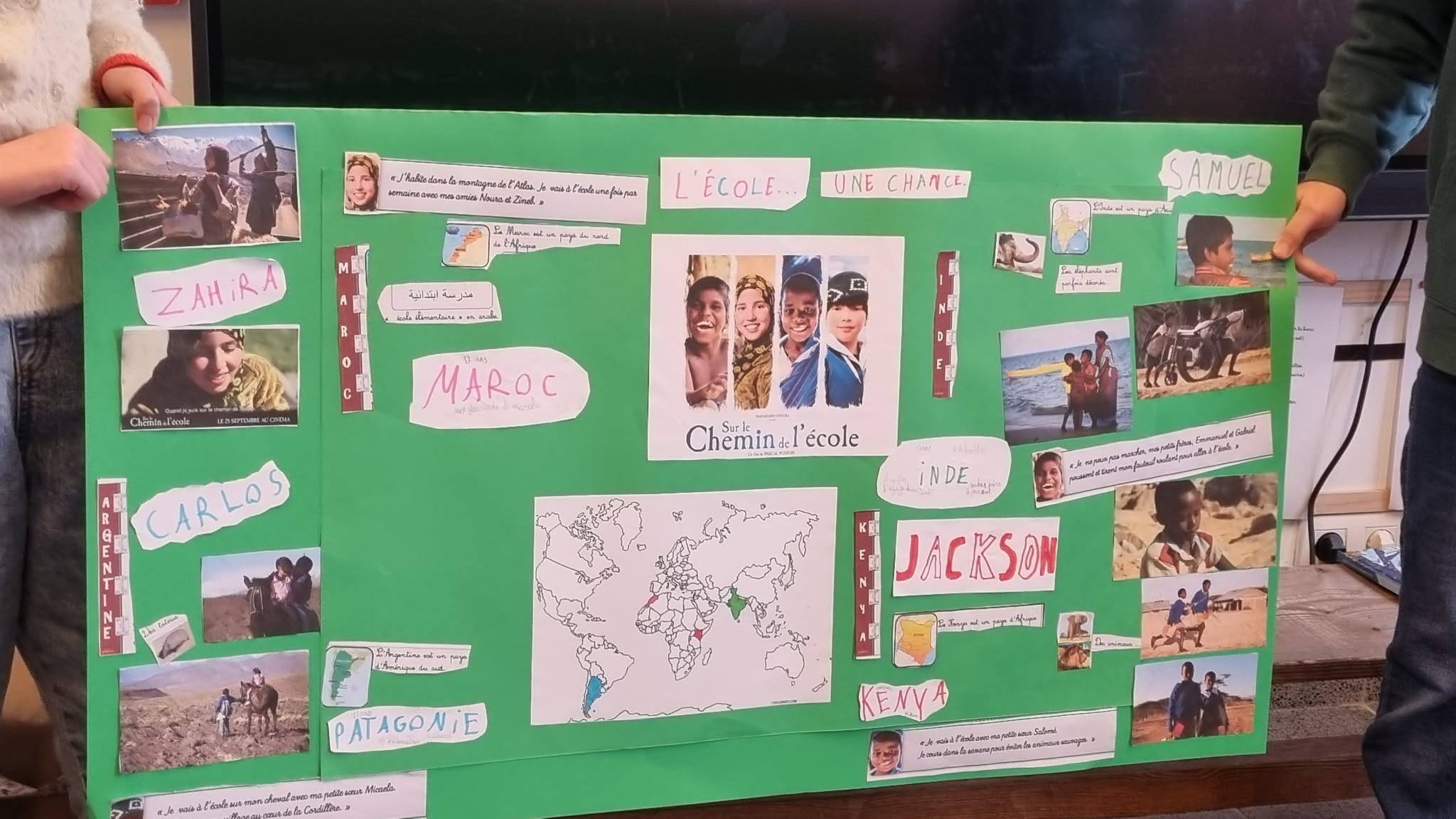 Après avoir visionné le film Sur le chemin de l’école, les élèves de quatrième primaire ont découvert le courage d’enfants qui parcourent chaque jour des kilomètres pour pouvoir aller à l’école. Touchés par ces histoires vraies, ils ont créé des affiches et sont allés les présenter aux élèves des autres classes. À travers ces échanges, ils ont expliqué le courage de ces enfants et lancé une récolte solidaire de brosses à dent, dentifrice, sparadraps et de bics afin de leur venir en aide via un ami médecin en partance pour une de leur région.