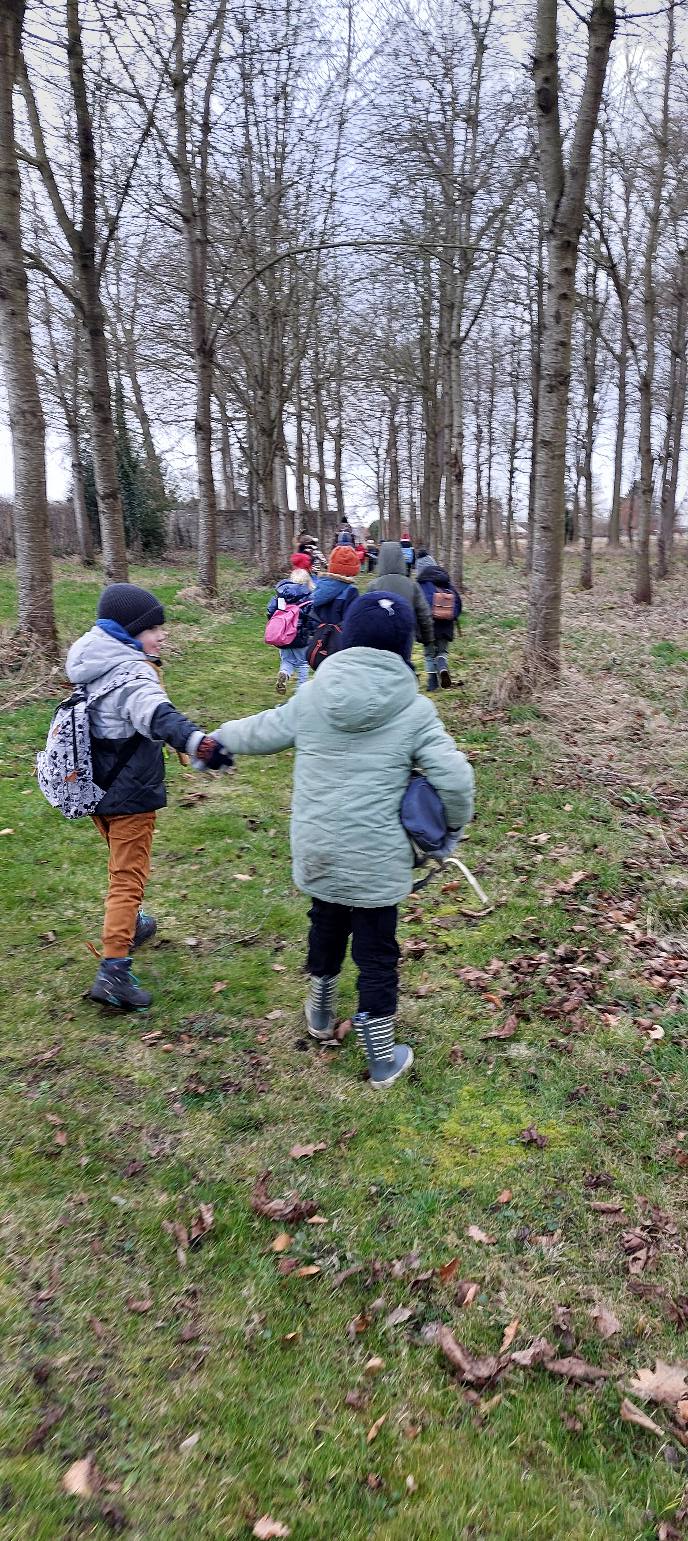 C'était une chouette matinée "école du dehors" pour les p1-p2. Les enfants ont observé leur arbre en hiver, rappelé du vocabulaire tel que hiberner, hiverner, migrer. Ensuite, ils ont préparé des boules de graisses et des colliers de cacahuètes pour les oiseaux de notre jardin.
