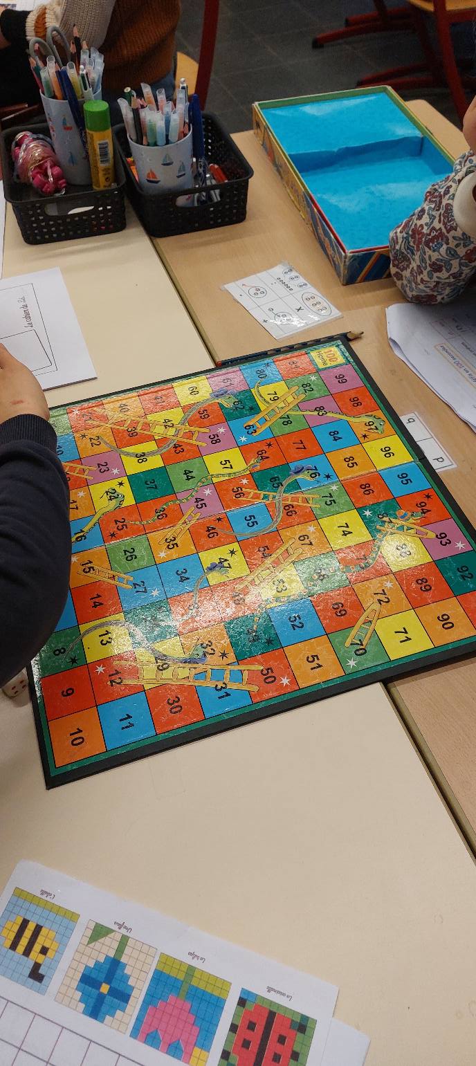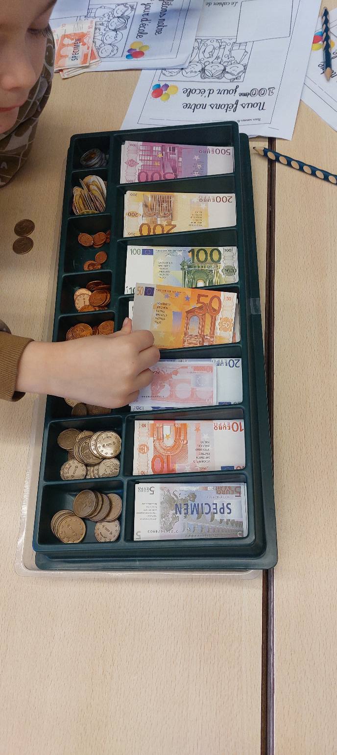 Ce mercredi était le 100e jour à l'école depuis le début de l'année. L'occasion pour les p1-p2 de réaliser des défis autour du nombre 100. Estimer, compter, construire, représenter...